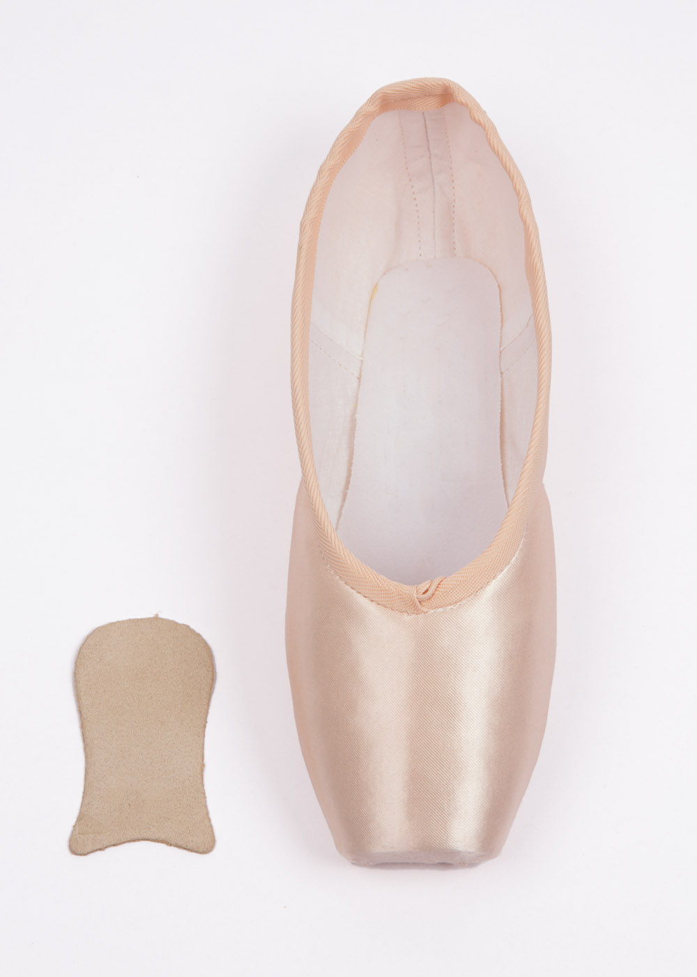 Glue the Pointe shoe caps made of beige suede to protect the toes. Natural leather.